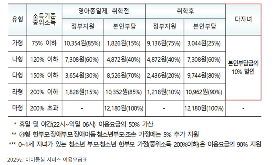 맞벌이 부모, 다자녀 가정, 장애 아동이 있는 가정을 중심으로 지원하며, 일정 소득 기준에 따라 정부 지원 비율이 결정됩니다.