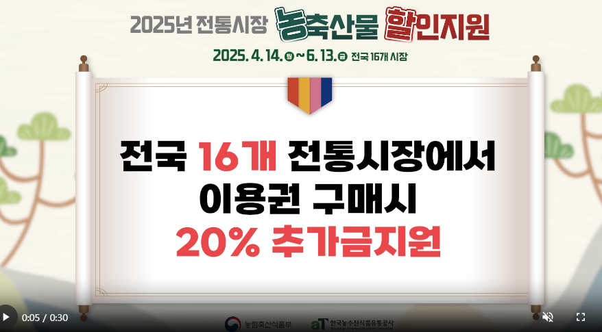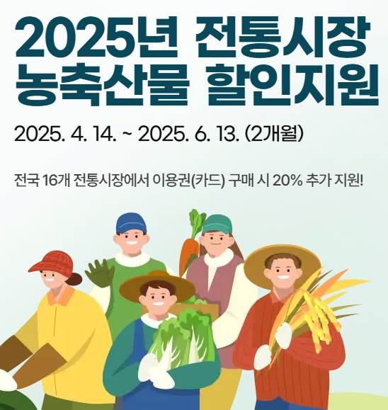전통시장 농산물 할인 이벤트는 우리 농산물 소비 촉진과 전통시장 활성화를 위한 정부 지원 사업입니다.