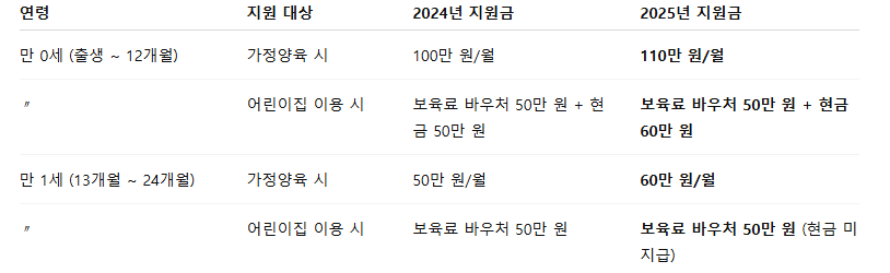 2025년부터는 양육수당 금액이 대폭 인상되어 아이를 직접 돌보는 가정에 실질적인 경제적 지원을 제공할 예정입니다.