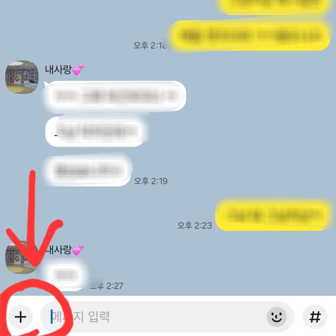 1. 카카오톡에서 메시지 입력 후 ‘더보기 아이콘’ 누르기